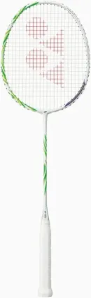 The newest advancement in racquet material, Nanomesh Neo, exhibits exceptional racquet attributes, such as improved flexibility, power, and control, when paired with HM graphite. The shaft of this racquet is 10mm longer than the standard YONEX racquet. More momentum provided by a longer shaft allows for greater power transmission to the shuttle.