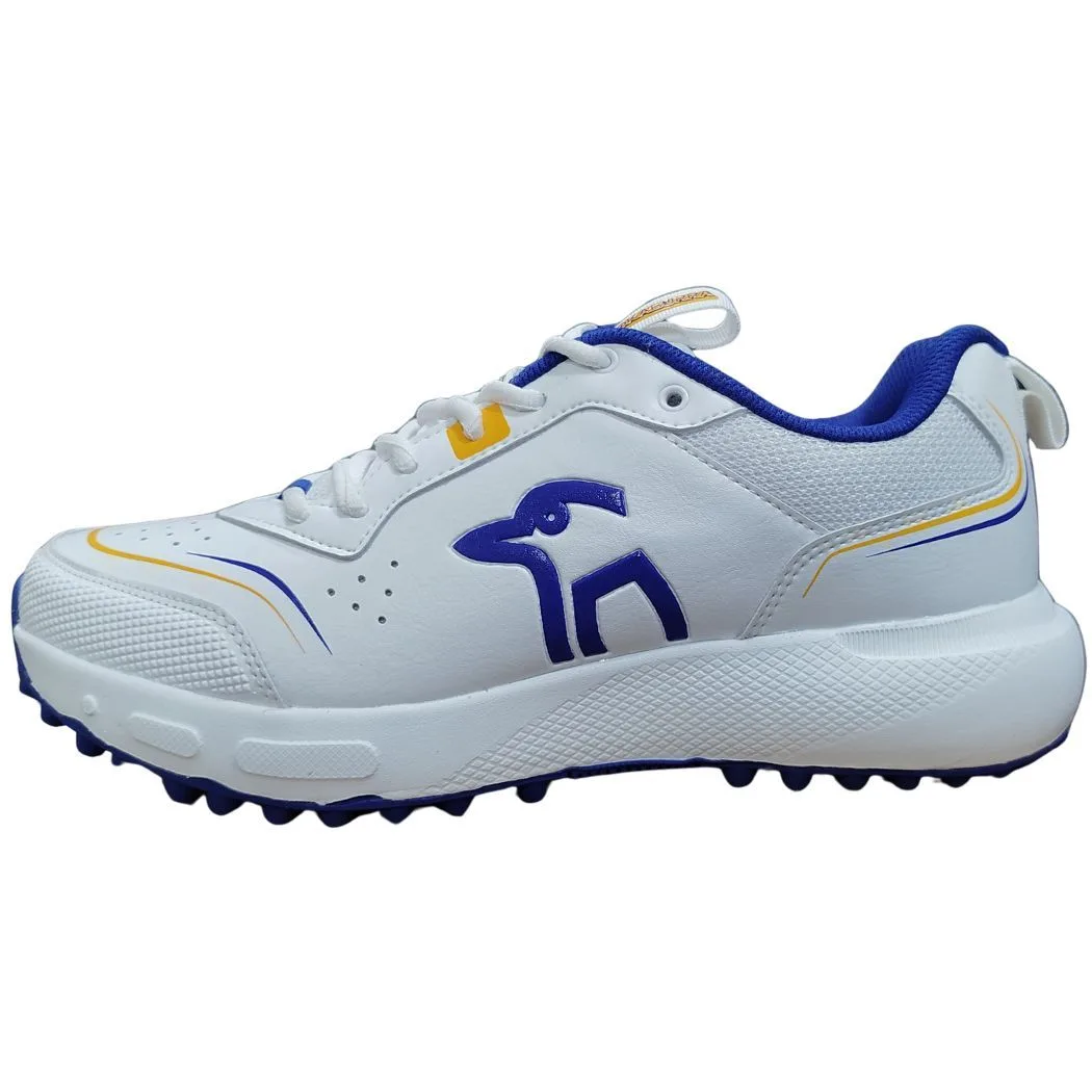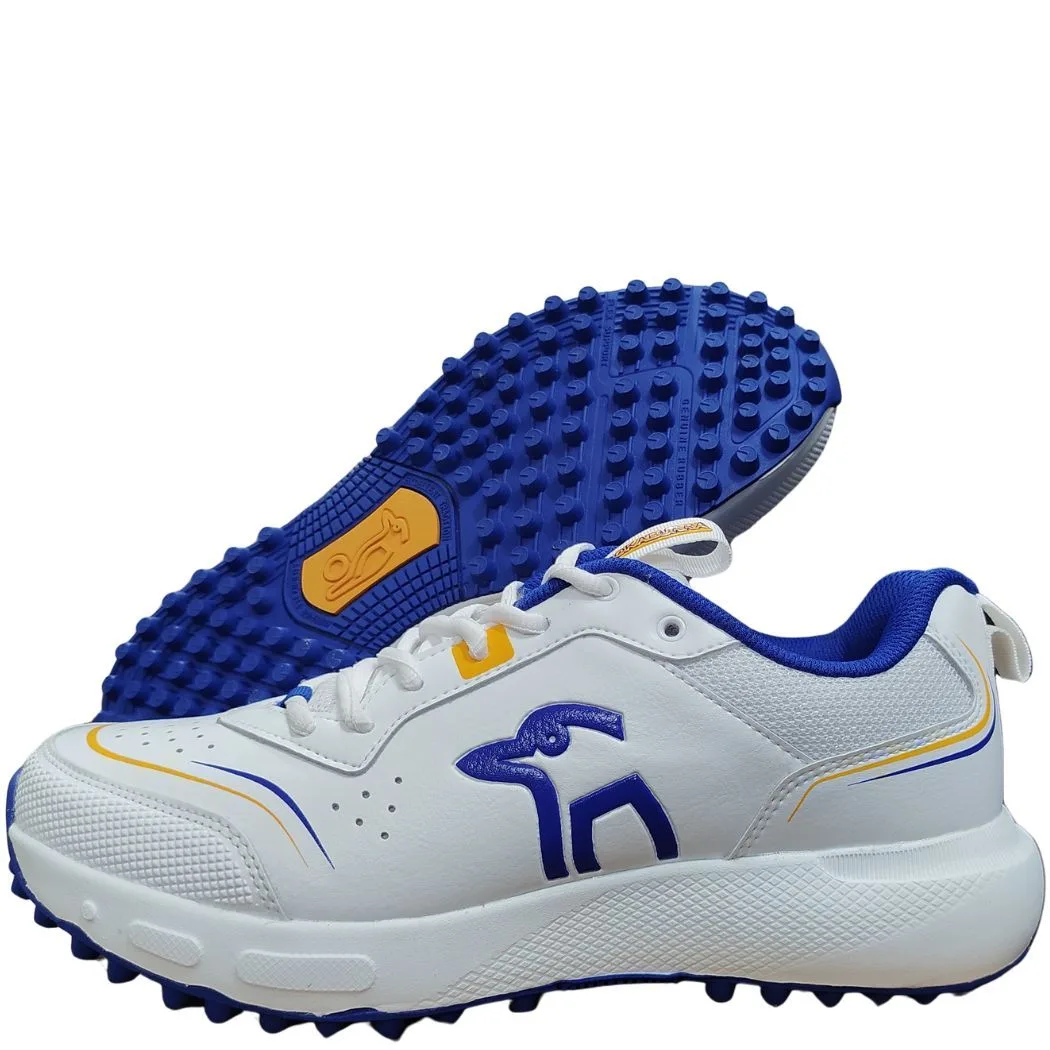 The Pro 3.2 Rubber is a lightweight, low-profile shoe designed to keep players agile and stable. It features a streamlined athletic last that minimizes bulk while providing the lateral support needed for quick pivots in the field or sharp turns while running between wickets. The Blue and White colorway offers a classic professional aesthetic that pairs easily with standard cricket whites. Shop all your cricket gear from Anytime Sports India.