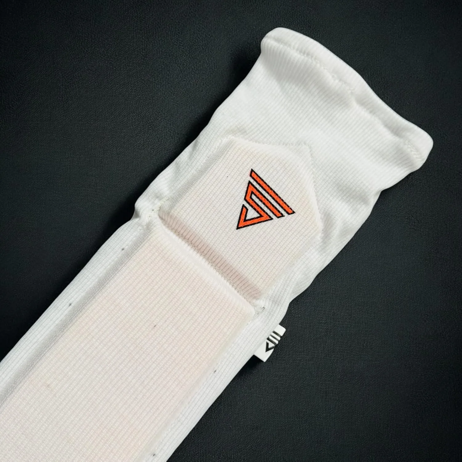 This Item Versant GC Player Arm Guard in white with blue branding, showing the contoured shape and elastic Velcro straps. Versant GC Player – Elite Dual-Density Foam Arm Guard PUMA PITCH PRO Men's Cricket Helmet PUMA PITCH PRO Men's Cricket Helmet SF Cadilac 666 English Willow Bat | Light Weight SF Cadilac 666 English Willow Bat | Light Weight SG Test White Batting Pads / Legguard SG Test White Batting Pads / Legguard